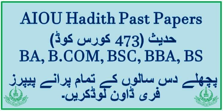 AIOU BA 473 Hadith Past Papers Free Download